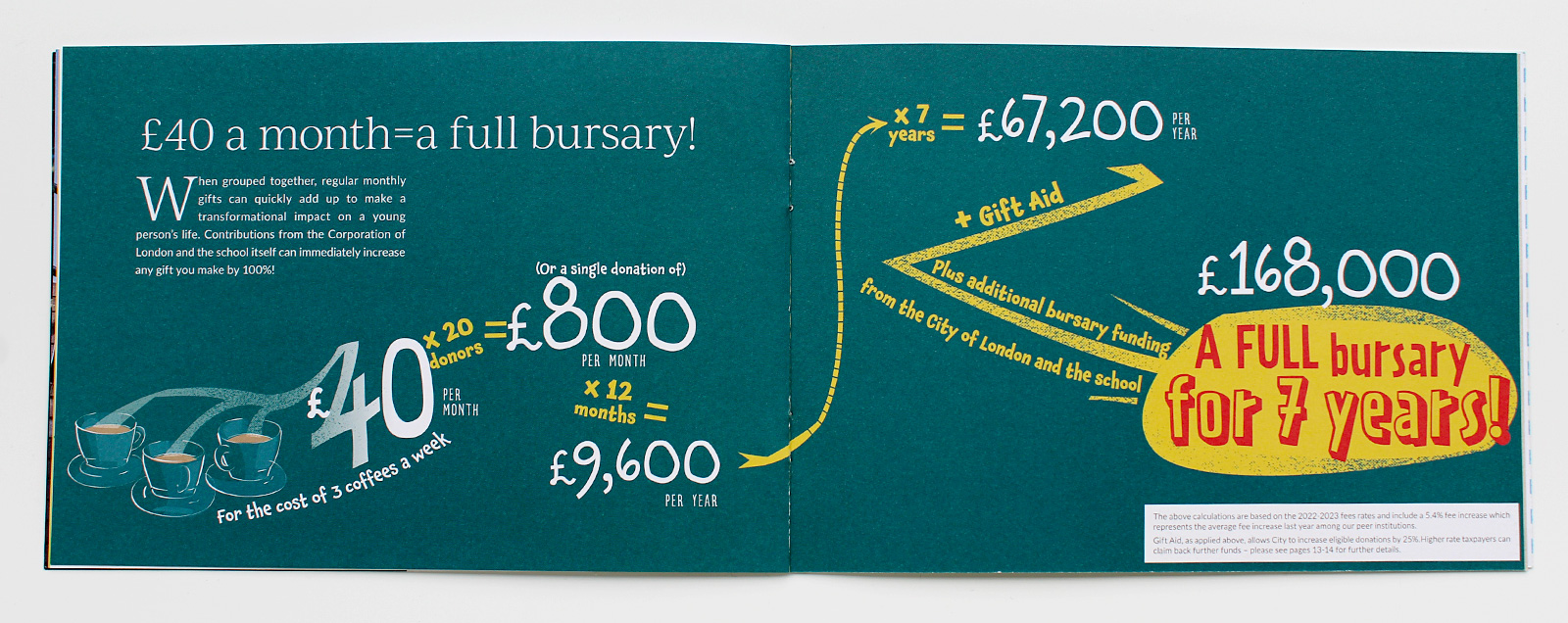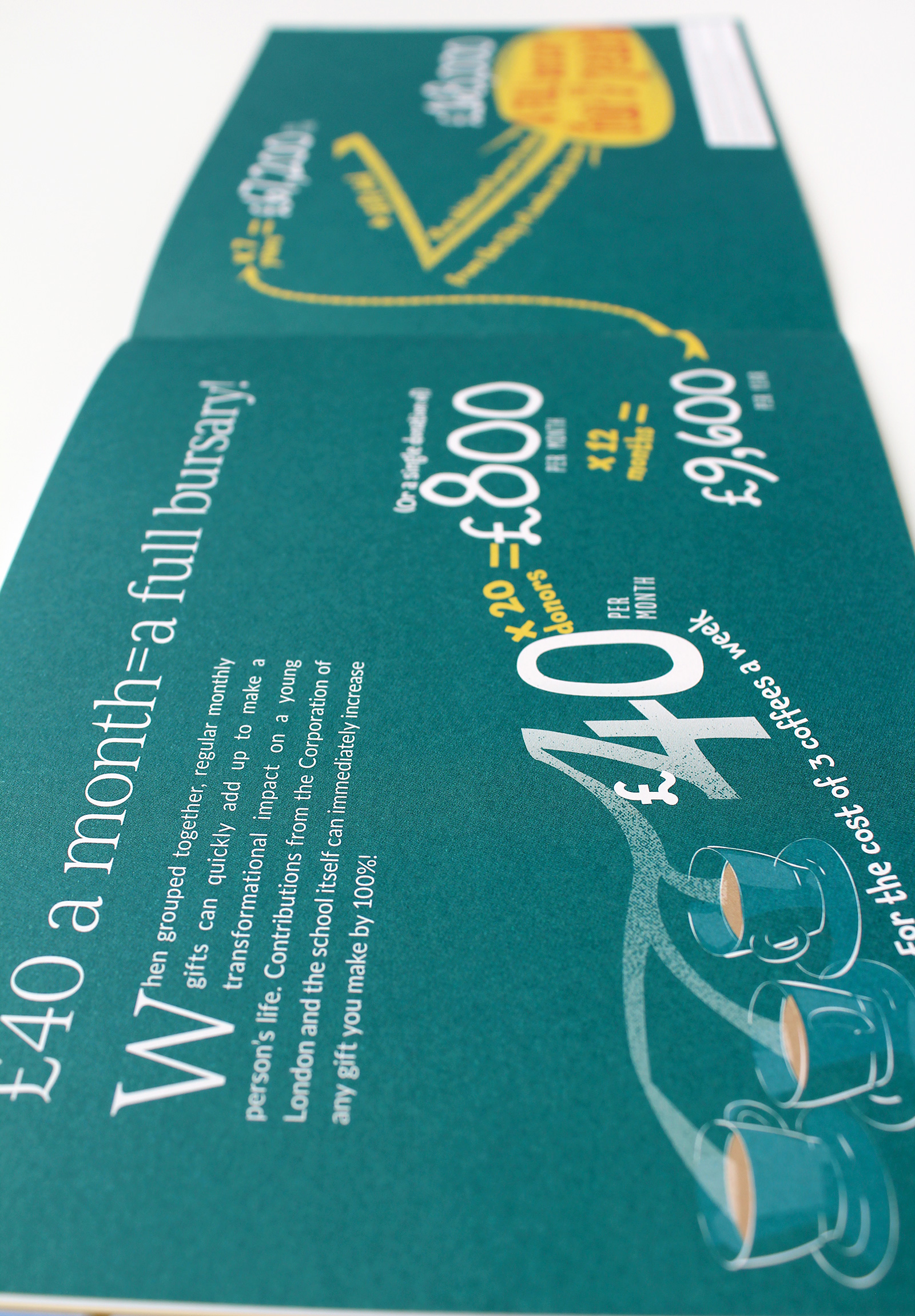 The aim of the campaign was to increase the number of regular donations to fund a new bursary. Since this campaign was launched, regular gifts have increased year by year. Donors commented that the simplicity of the concept and visual expression of this really helped them to understand the difference a small change can have, as well as the impact of a collective response.