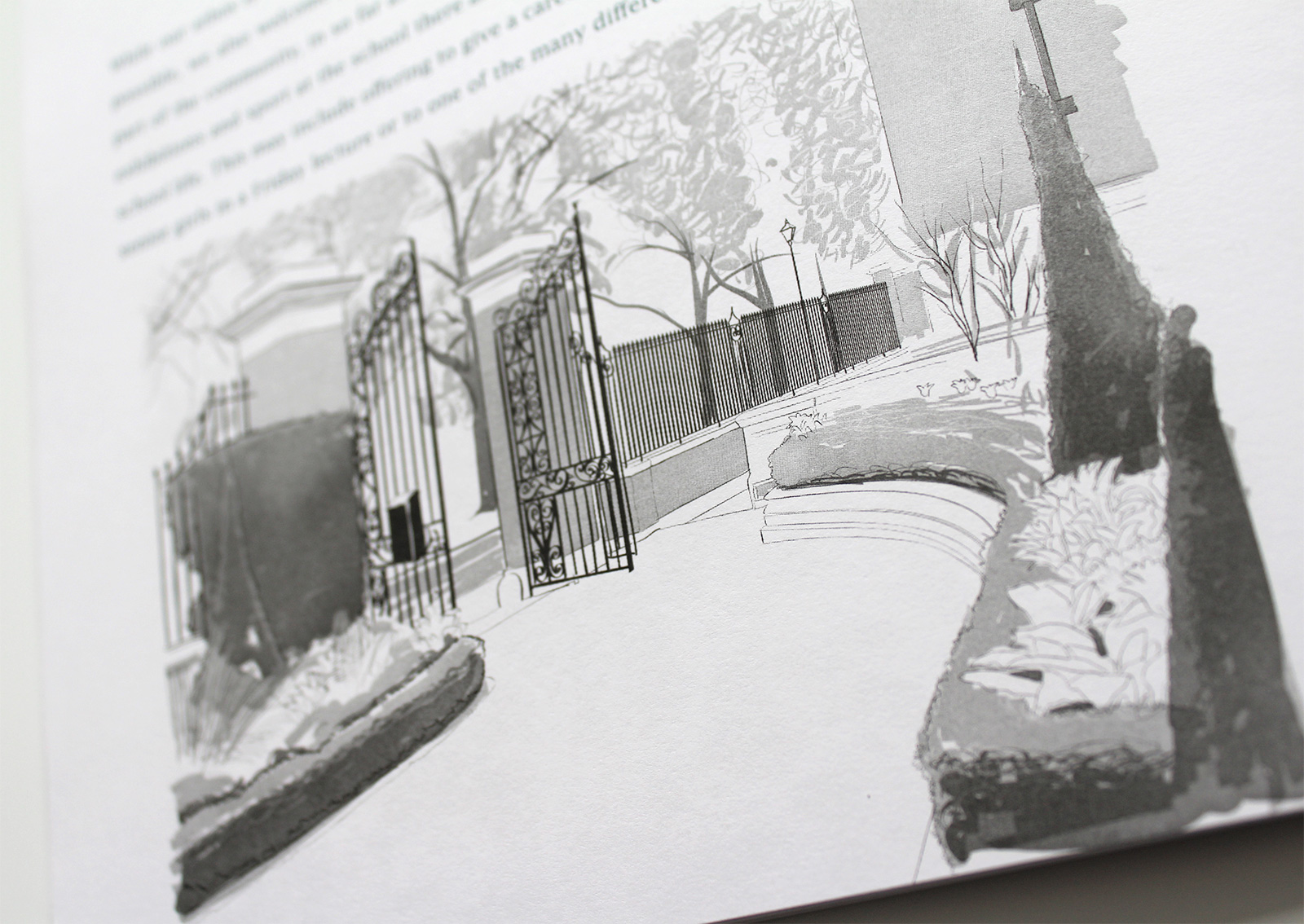The handbook needed some imagery to break the columns of text so rather than include photographs which would have given the publication more of a prospectus feel, we illustrated architectural features. The parents were already very familiar with the school so illustrations offered a softer perspective.