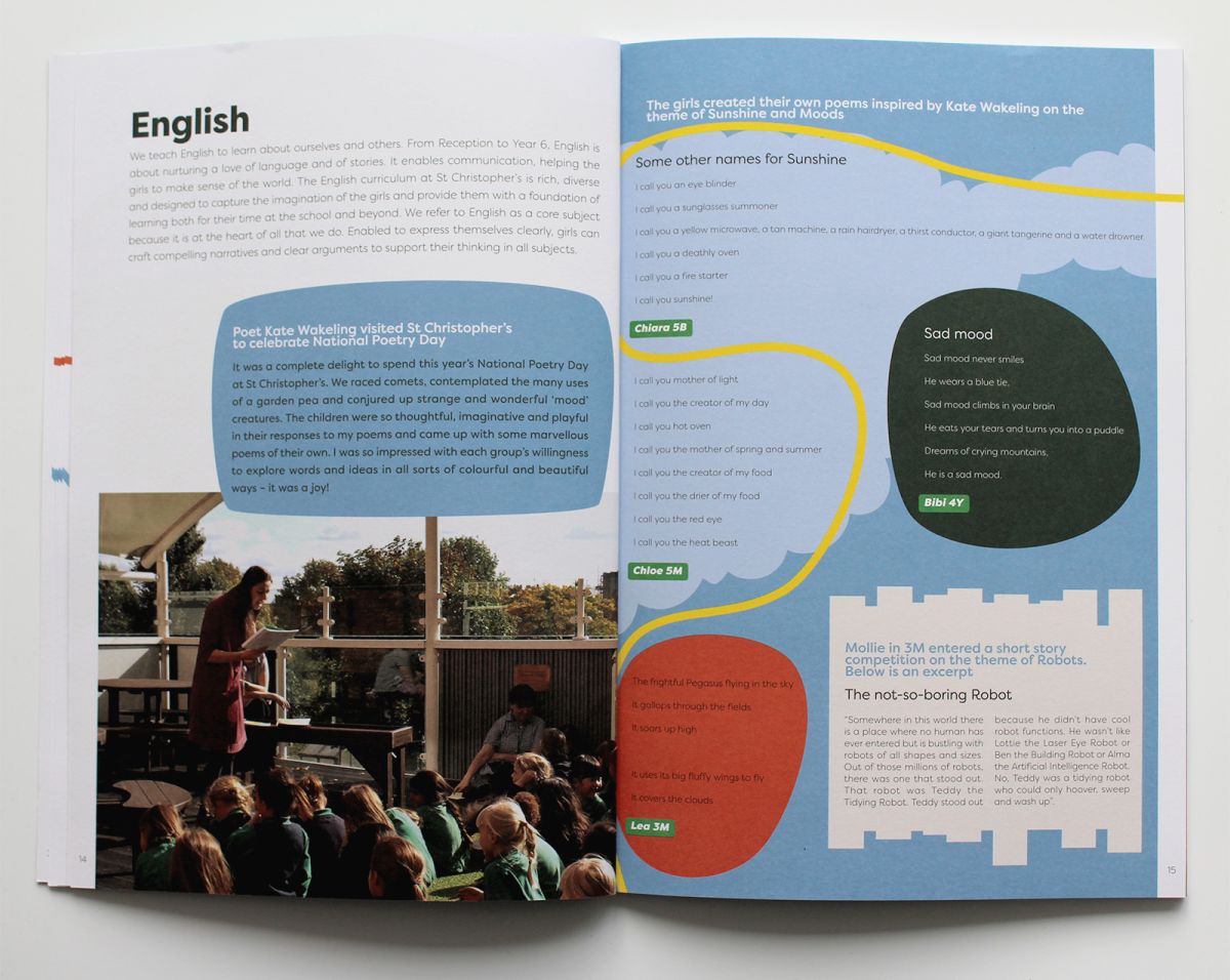 Having worked with St Christopher's in Hampstead for a number of years, we were asked to redesign for their annual magazine in keeping with their new website. The new palette and associated graphic devices led the curation of the content and the design of spreads to tell the story of the school in a year.