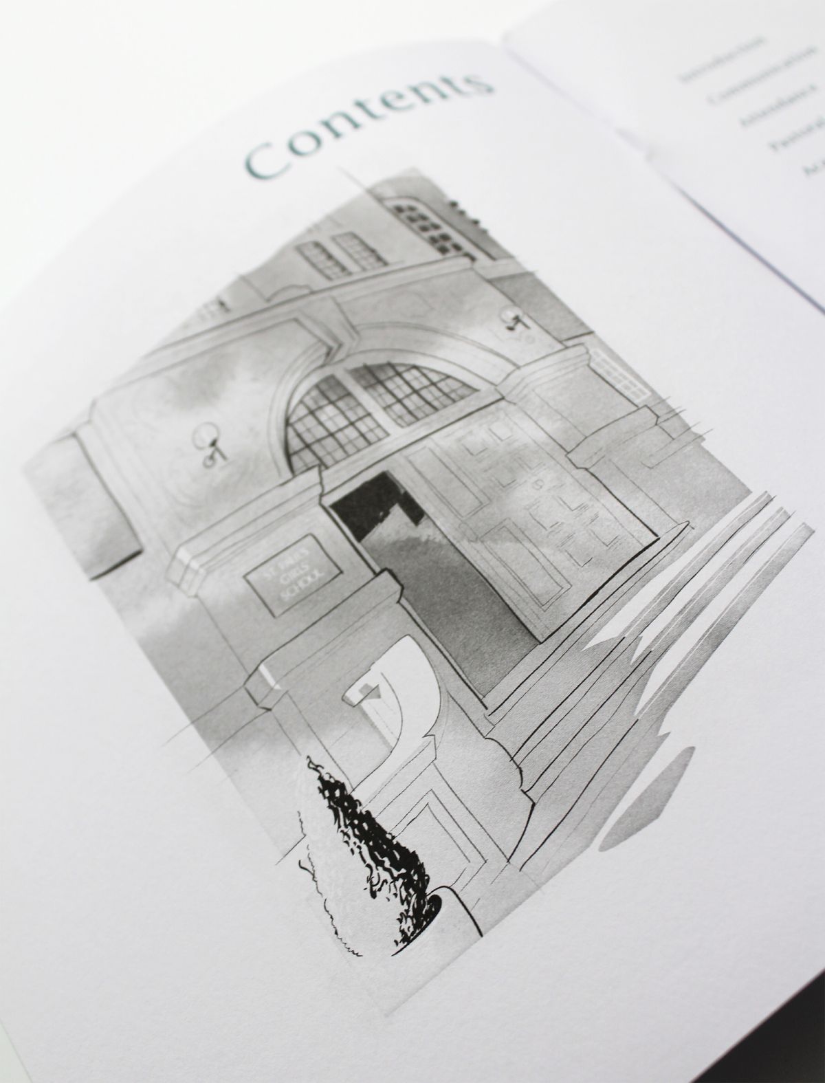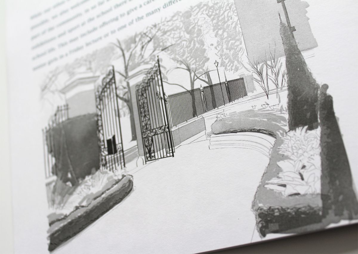 The handbook needed some imagery to break the columns of text so rather than include photographs which would have given the publication more of a prospectus feel, we illustrated architectural features. The parents were already very familiar with the school so illustrations offered a softer perspective.