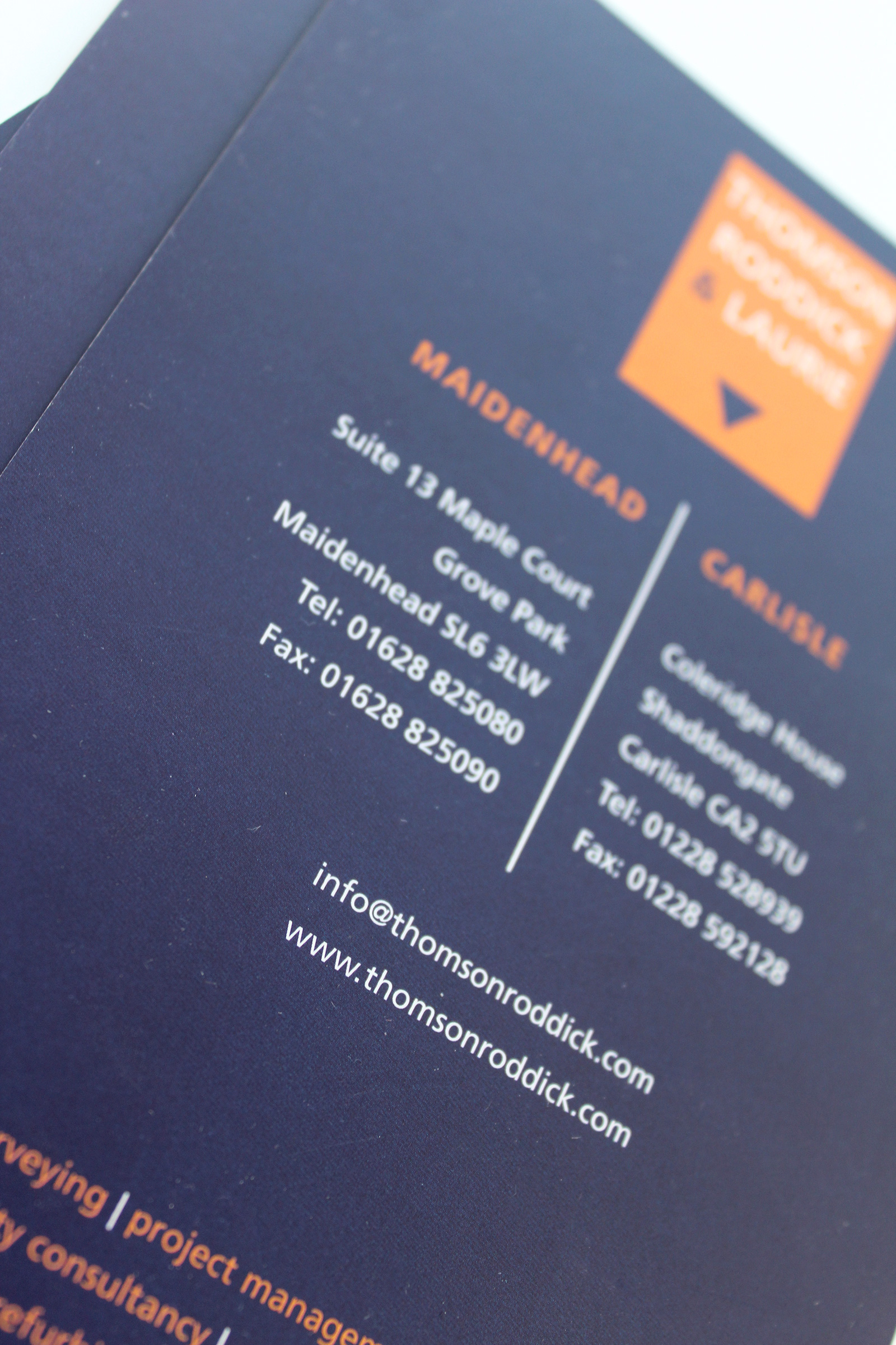 We have worked with Thomson, Roddick and Laurie on a number of marketing projects. The brief was to develop the use of their long-established brand identity so the new exhibition materials stood out and conveyed a strong visual message of the expertise and attention-to-detail Thomson, Roddick and Laurie were renown for.