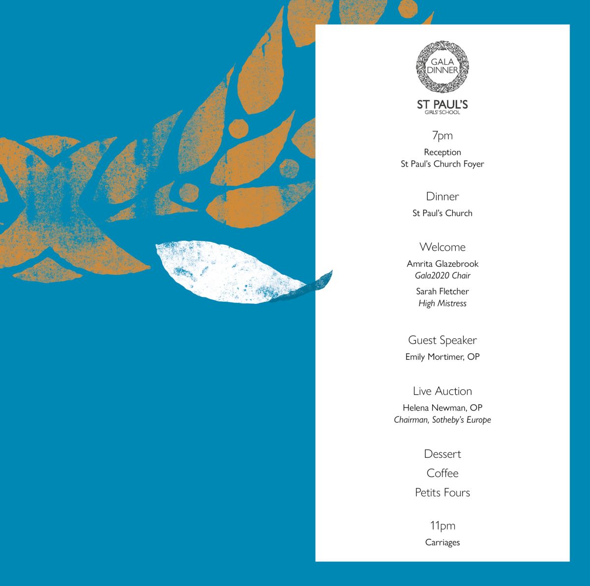 The design for this brochure included a graphic to illustrate the purpose of the event; to raise funds to endow a specific bursary.
