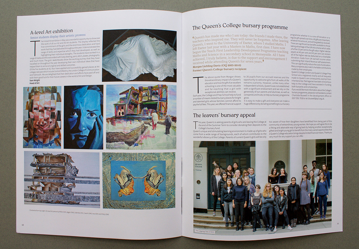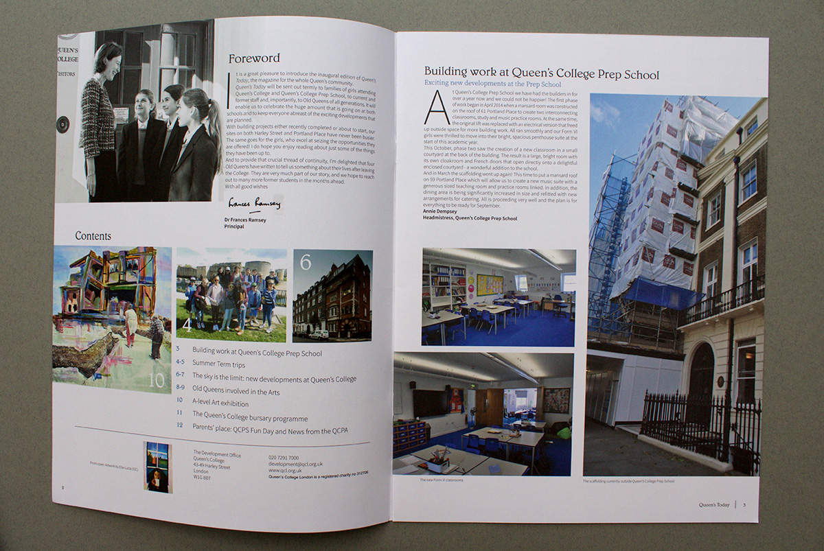 Here are some highlights from the first three editions of Queen's Today, the termly publication for alumni and the wider school community of Queen's College, London. The magazine was a new launch by the school to reach out to past students as well as to share news with the current students, parents, staff and other members of the school.